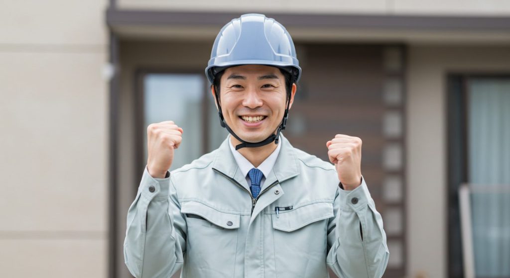 この工事の担当はサクライ君。板金担当です。安全対策ばっちりで工事に臨みましたよ。