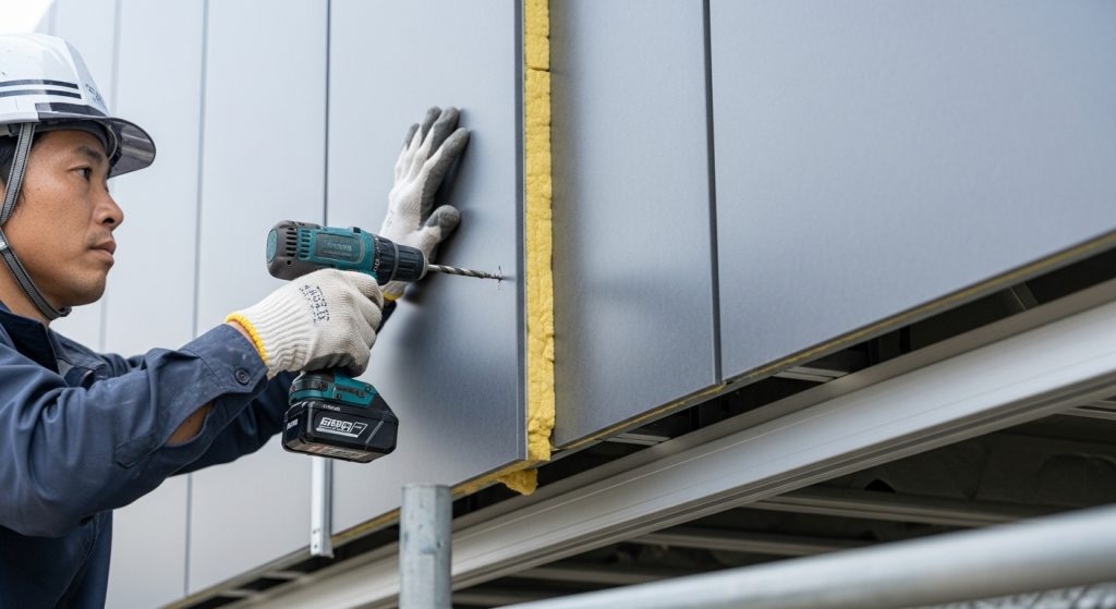 f様邸の工事、進んでおります。この日はシーリングを撤去しております。